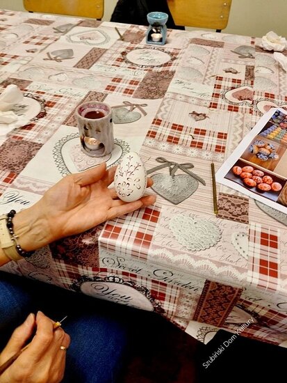 Warsztaty przebiegały w miłej i twórczej atmosferze. Powstało wiele pięknych, kolorowych prac, a wspólne spotkanie było doskonałą okazją do integracji mieszkańców oraz pielęgnowania wielkanocnych tradycji.