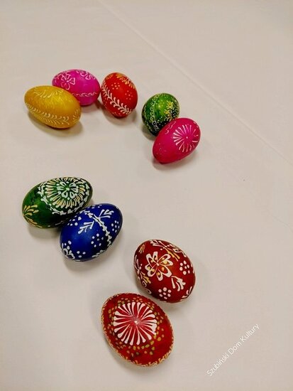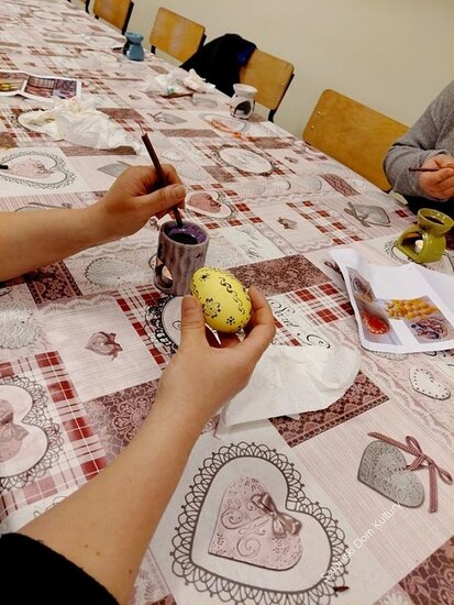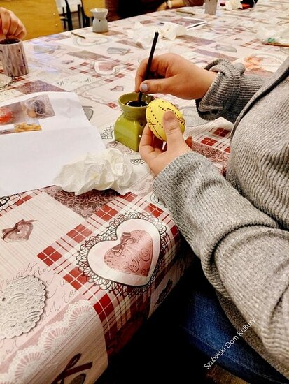 Zajęcia poprowadziła instruktor SzDK Małgorzata Bołka, która wprowadziła uczestników w tajniki tej tradycyjnej techniki oraz służyła pomocą podczas wykonywania pisanek.