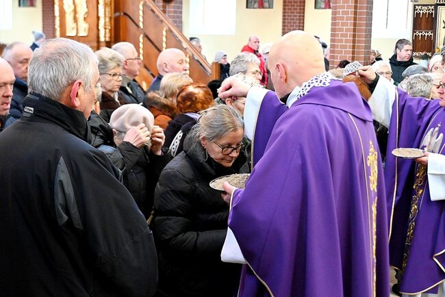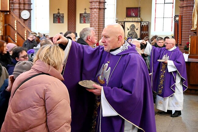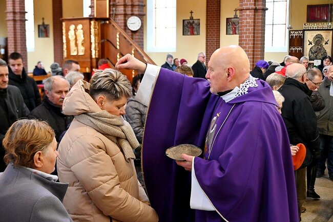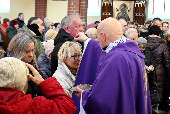 Podczas mszy świętej kapłani dokonali obrzędu posypania głów popiołem, czyniąc na czole wiernych znak krzyża. Towarzyszyły temu słowa przypominające o przemijaniu i potrzebie nawrócenia: „Prochem jesteś i w proch się obrócisz” lub „Nawracajcie się i wierzcie w Ewangelię”. Symboliczny gest ma przypominać o kruchości ludzkiego życia oraz wezwaniu do przemiany serca.