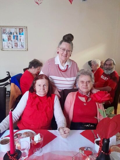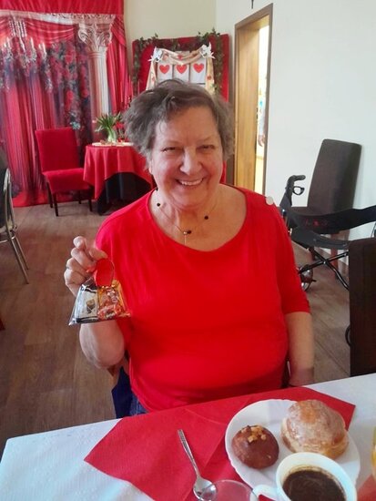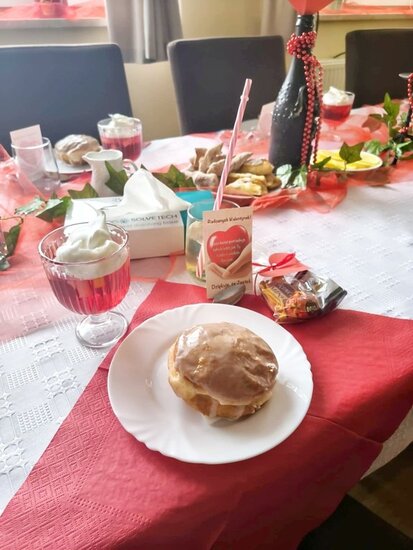 12 lutego pierwsza grupa seniorów# z Dziennego Domu Pobytu Senior+ w Nakle świętowała wspólnie Tłusty Czwartek i Walentynki.