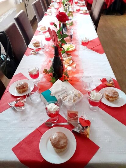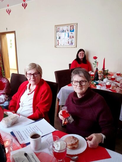 Królowały: pączek, faworki i kolor czerwony, a atmosfera była pełna ciepła i radości. Wróciliśmy do lat młodości za sprawą pięknych utworów o miłości, które przywołały wiele wzruszeń i wspomnień. Były także poruszające wiersze polskich poetów oraz ciekawa prezentacja poświęcona Walentynkom – świętu miłości. Bo Walentynki to nie tylko miłość… To także życzliwość, szacunek, radość, zrozumienie, szczęście, empatia, troska i sympatia – wartości, które warto pielęgnować każdego dnia. Dziękujemy za ten piękny, pełen emocji i serdeczności czas.