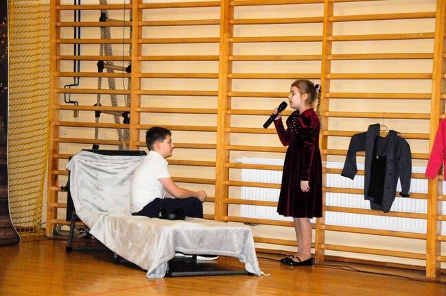 Część artystyczną rozpoczęła klasa pierwsza, prezentując wiersze i piosenkę, ukazujące obraz nowoczesnej Babci i Dziadka. Występ wzbudził wiele uśmiechów i radości wśród publiczności.
