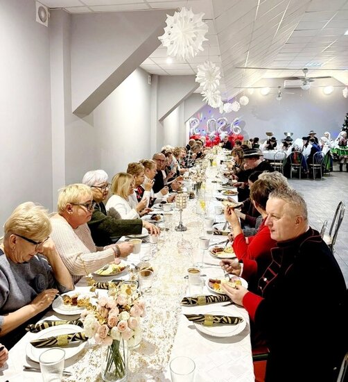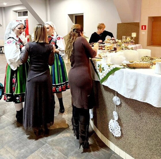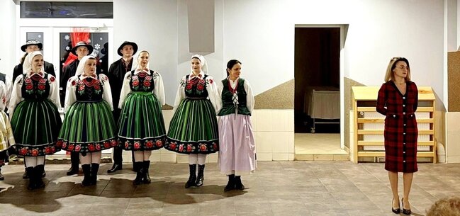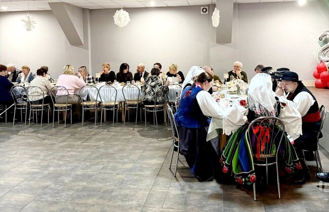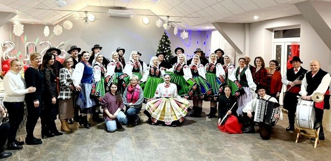 Planując spotkania integracyjne na# cały rok kalendarzowy jest taki czas, w którym pamiętamy o starszym pokoleniu naszych mieszkańców. Łącząc Dzień Seniora oraz Dzień Babci i Dziadka zorganizowaliśmy koncert zapraszając do udziału zaprzyjaźniony zespół ludowy Krajna. Dzięki temu obejrzeliśmy występ świąteczno - noworoczny, oparty na śpiewaniu i tańcu ludowym.