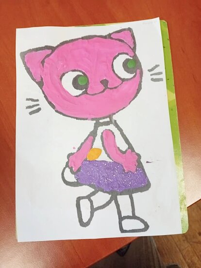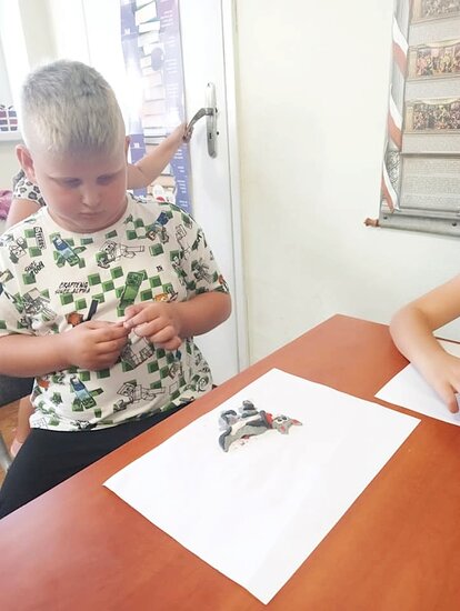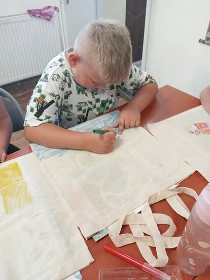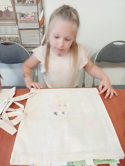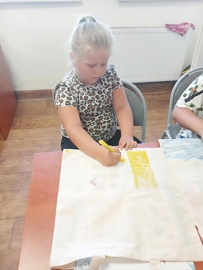 Zadaniem dzieci było ulepienie z niej swojej ulubionej postaci z bajki. Następnie dzieci dostały torby i na nich malowały pisakami to co chcą. Dzieci wykazały się dużą kreatywnością. Na koniec zajęć każdy z uczestników otrzymał do domu figurkę 3D do samodzielnego złożenia. Po złożeniu rodzice wyślą zdjęcie już złożonych figurek i umieścimy na naszej stronie.