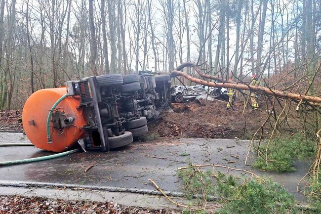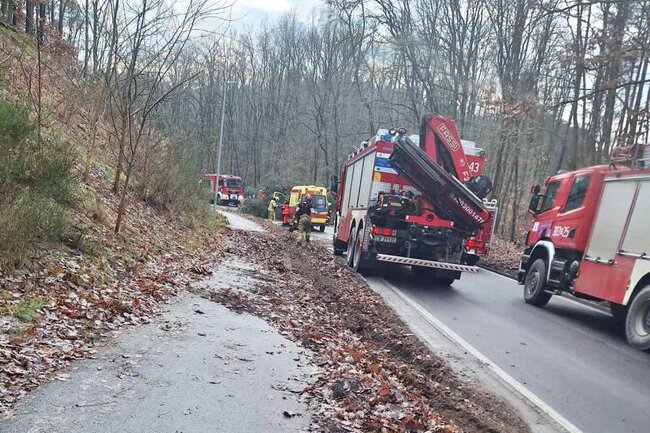 - Wieczorne działanie służb. Niebezpieczne zdarzenie drogowe