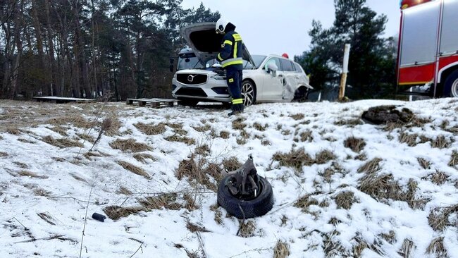 Po zderzeniu w jednym z pojazdów aktywował się system eCall, który automatycznie poinformował służby o zdarzeniu. Według wstępnych informacji doszło do zderzenia czołowego, w wyniku którego jedna osoba miała zostać uwięziona w pojeździe. Ze względu na powagę zgłoszenia na miejsce natychmiast skierowano dwa Zespoły Ratownictwa Medycznego, trzy zastępy Straży Pożarnej, Policję oraz śmigłowiec Lotniczego Pogotowia Ratunkowego. Po przybyciu na miejsce zastano trzy pojazdy w przydrożnym rowie. Ze wstępnego rozpoznania wynikało, że śmigłowiec LPR nie jest potrzebny i został odwołany. Zadaniem służb było przebadanie uczestników kolizji, zabezpieczenie miejsca zdarzenia oraz odłączenie akumulatorów. W zdarzeniu brały udział trzy osoby, które po przebadaniu pozostały na miejscu, dlatego zdarzenie zostało zakwalifikowane jako kolizja drogowa.