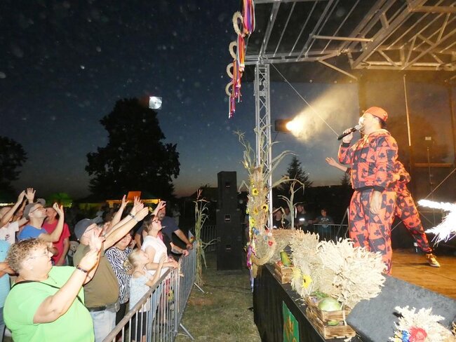 Jako pierwsi swoje umiejętności mieli okazję zaprezentować muzycy z łobżenickiej Orkiestry Dętej, którzy wcześniej prowadzili również dożynkowy korowód oraz zadbali o oprawę polowej mszy świętej. W dalszej kolejności przed publicznością zaprezentowała się utalentowana wokalistka Ewa Kryza, a tuż po niej uczestniczące w imprezie osoby zostały zaproszone do udziału w tradycyjnej Biesiadzie Śląskiej.