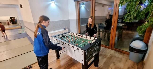 Był też czas na zabawy na śniegu – którego w tym roku było pod dostatkiem – a także na popołudniowe zajęcia edukacyjno-profilaktyczne prowadzone przez panią wychowawczynię. Dużym zainteresowaniem cieszyły się turnieje w FIFA, tenisa stołowego oraz piłkarzyki.