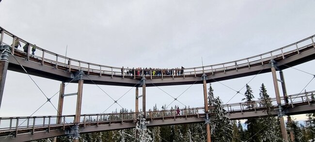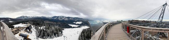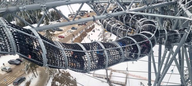 Wtorkowe popołudnie zawodnicy wraz z trenerami i opiekunami odwiedzili SkyWalk Serce Poronina (tzw. „ścieżkę w chmurach”). To nowoczesna wieża widokowa o wysokości około 62–65 metrów, oferująca 850-metrową spiralną kładkę, przeszklone platformy, siatki do leżenia oraz 105-metrową zjeżdżalnię. Obiekt położony jest na wysokości około 1100 m n.p.m. i pozwala podziwiać malowniczą panoramę gór.