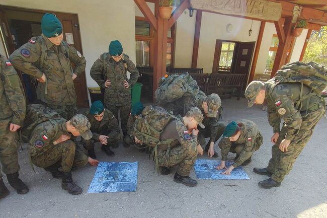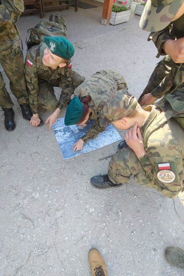 Po szybkim śniadaniu zebraliśmy się na zbiórkę, gdzie okazało się, że dzisiaj naszymi przyjaciółmi będą mapa i kompas. Wyruszyliśmy o godz. 8:40. Oczywiście zabraliśmy ze sobą wodę, opatrunki i coś do zjedzenia, co okazało się bardzo przydatne w trakcie marszu, po drodze musieliśmy radzić sobie z błędnymi określeniami i problemami przy wyznaczaniu trasy.