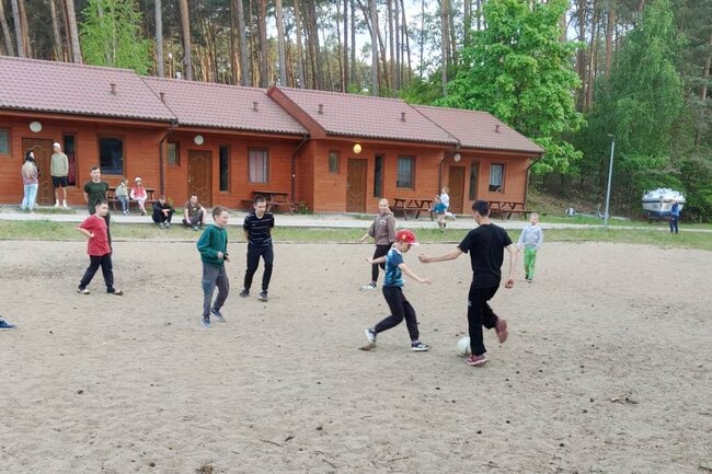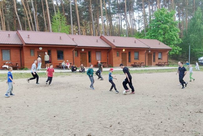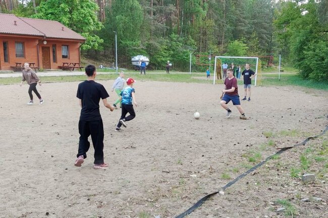 Po obiedzie mieliśmy 2 godziny odpoczynku, a następnie kontynuowaliśmy obozowe szkolenie strzeleckie. Kolacja była wyjątkowo smaczna, a po niej chwila dla sprawności – wspólny mecz z dziećmi, które dzisiaj przyjechały na obóz. Mecz był wyrównany i zaciekły, pełen kurzu, mało goli, ale za to mnóstwo dobrej zabawy i śmiechu.