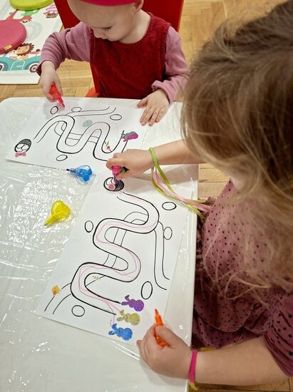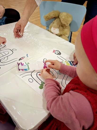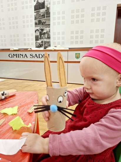 Pani Eugenia przeczytała ciekawą książeczkę, a następnie wspólnie wykonaliśmy pracę plastyczną – urocze zajączki z rolek. Szukaliśmy drogi do koszyczka z jajkami, rozwijając logiczne myślenie i spostrzegawczość, a także próbowaliśmy swoich sił w liczeniu.