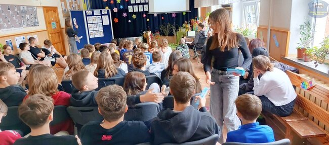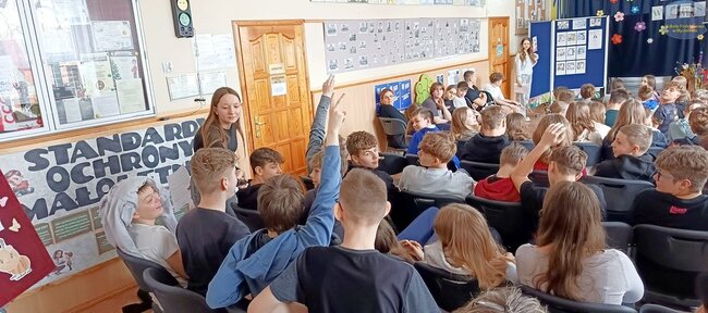 Edukacja filmowa: Uczniowie obejrzeli materiały wideo dostosowane do ich wieku oraz filmową ankietę przeprowadzoną wśród społeczności szkolnej.