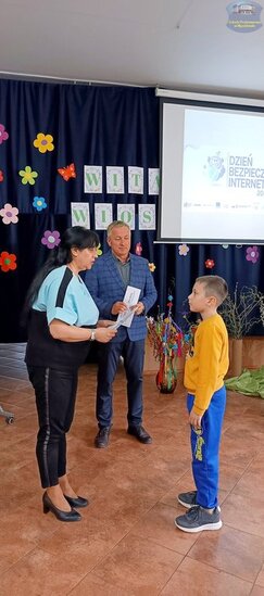 Ważnym elementem uroczystości było rozstrzygnięcie szkolnego konkursu informatycznego „Stop Cyberprzemocy”, o którym pisaliśmy tutaj. Laureatami zostali Michał Senska z klasy II oraz Justyna Jeż z klasy VII, którzy otrzymali nagrody w wysokości 300 zł.