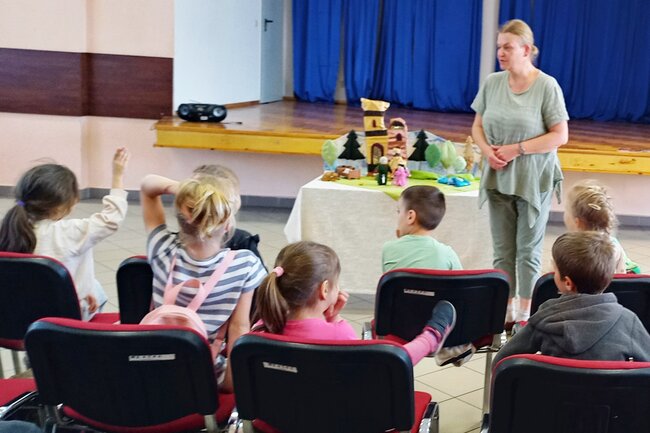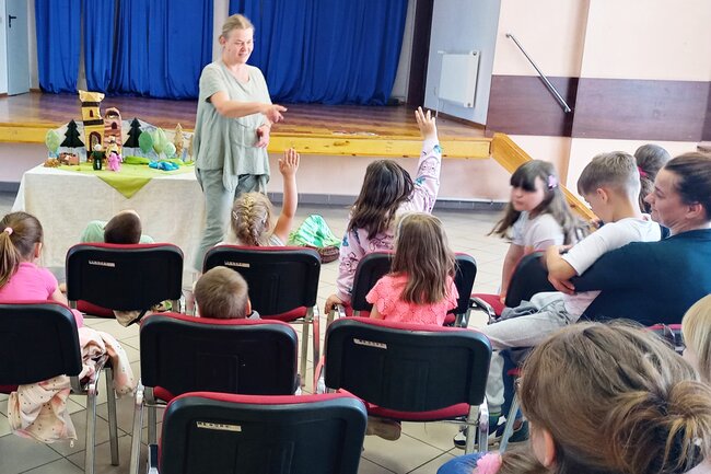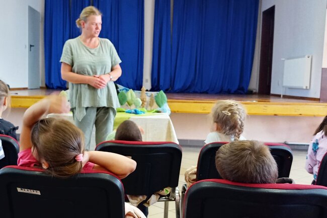 Dzieci z zaciekawieniem obejrzały spektakl. Po spektaklu Pani Katarzyna rozmawiała z młodymi widzami.