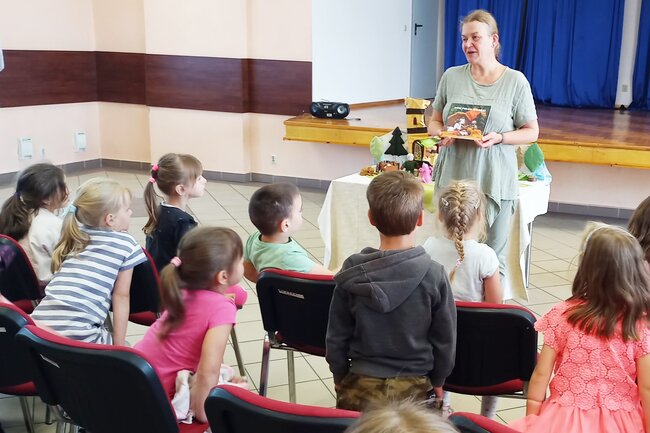 Biblioteka otrzymała książeczkę Katarzyny Torzewskiej pt. Dom pełen miłości będącej scenariuszem oglądanego tego dnia przedstawienia.