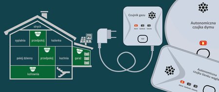 Autonomiczne czujki dymu i tlenku węgla należy instalować zgodnie z instrukcją producenta oraz regularnie kontrolować i utrzymywać w sprawności technicznej.