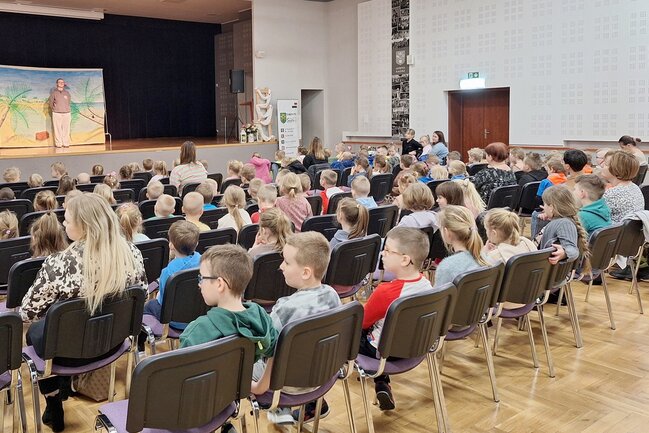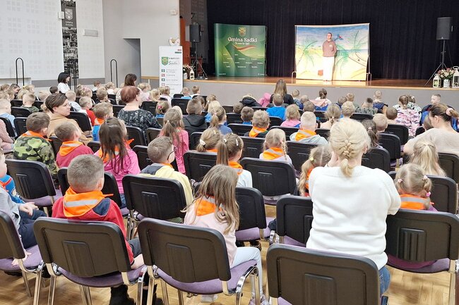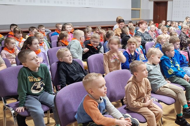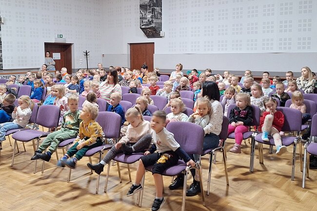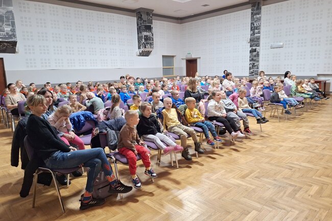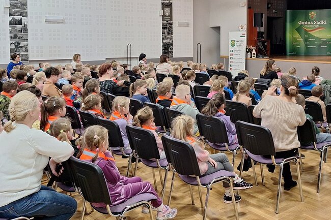 W czwartek, 13 marca na salę widowiskową # Gminnego Ośrodka Kultury w Sadkach przybyły przedszkolaki z oddziału przedszkolnego Szkoły Podstawowej w Sadkach oraz cztery grupy uczęszczające do Przedszkola Dobre Ludki w Sadkach.