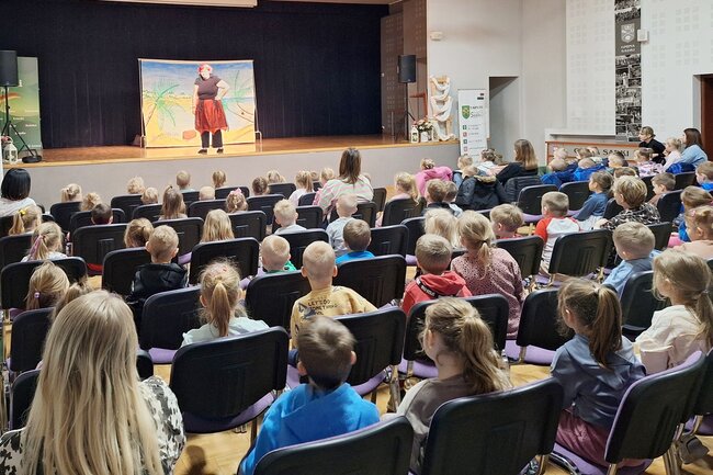 Na scenie pojawił się teatr "Maska" z Krakowa. Przedstawienie, które oglądały dzieci nosiło tytuł "Na końcu świata, przygoda Misia i Kasi piratki". Pokazało ono, jak ważna jest przyjaźń. Przedszkolaki zobaczyły, że warto troszczyć się o tych, których kochamy.