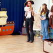 Każda grupa bardzo się zaangażowała. W fantazyjnych strojach i zaopatrzeni w mapę ruszyliśmy na poszukiwanie skarbu Pani Wiosny. Po przygotowaniu statku łapaliśmy wiatr w żagle i dmuchając na papierowe łódeczki dotarliśmy na Wyspę Wiosennych Zagadek, z których rozwiązaniem dzieci doskonale sobie poradziły.