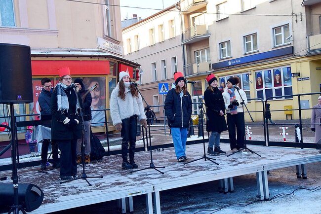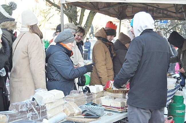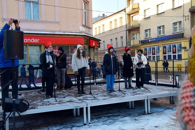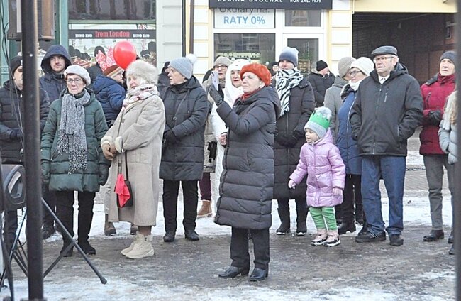 Na Rynku przybyli wysłuchali mini koncertu kolęd. Ciepły barszcz i krokiety zapewniło sołectwo Bielawy.