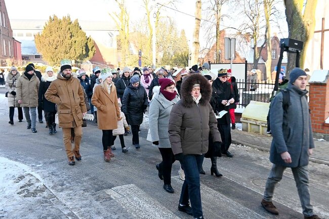 Uroczysty pochód wyruszył spod kościoła farnego około godziny 12.30. Barwny orszak, prowadzony przez Trzech Króli, wypełniły śpiew kolęd, modlitwa oraz radosna atmosfera wspólnego przeżywania święta. Uczestnicy – zarówno dorośli, jak i dzieci – z entuzjazmem włączyli się w to wyjątkowe wydarzenie, które na stałe wpisało się już w kalendarz lokalnych tradycji.