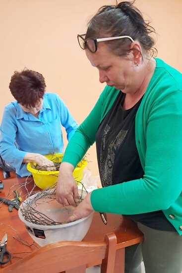 Z gałązek brzozy, gryszpanu, mchu oraz kolorowych ozdób powstały przepiękne stroiki na stół i drzwi.