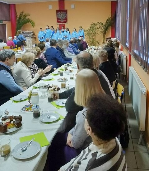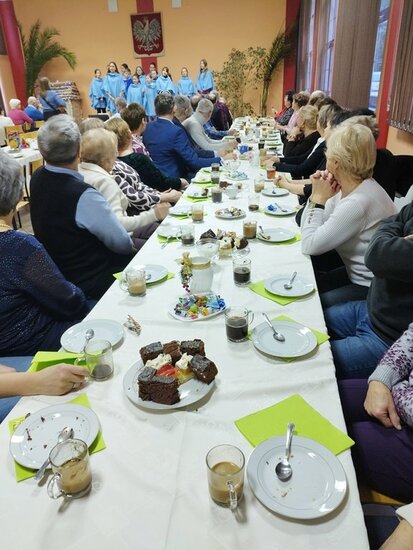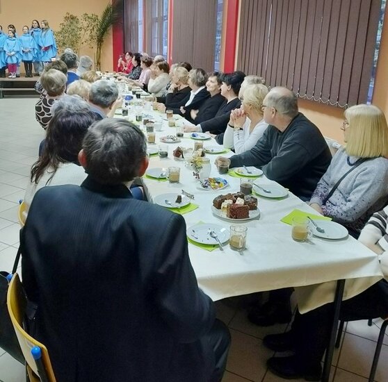 Atrakcja w czasie uroczystości był występ zespołu wokalnego Schola Getsemani, która pod przewodnictwem Pani Agnieszki Berka zaśpiewał piękne polskie kolędy. Popołudnie przy kawie upłynęło w miłej i wesołej atmosferze, rozmowom nie było końca. Zaproszeni goście otrzymali drobne upominki. Organizatorami spotkania byli: P. Sylwia Klim Sołtyska i kierowniczka biblioteki w jednej osobie oraz Rada Sołecka, i Świetlica Wiejska.