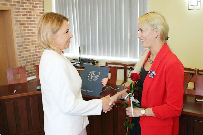 Ustępującej dyrektor podziękowano za życzliwość, wyrozumiałość i trud włożone w pracę dla rozwoju Przedszkola Miejskiego w Mroczy oraz bardzo dobrą współpracę z samorządem gminnym.